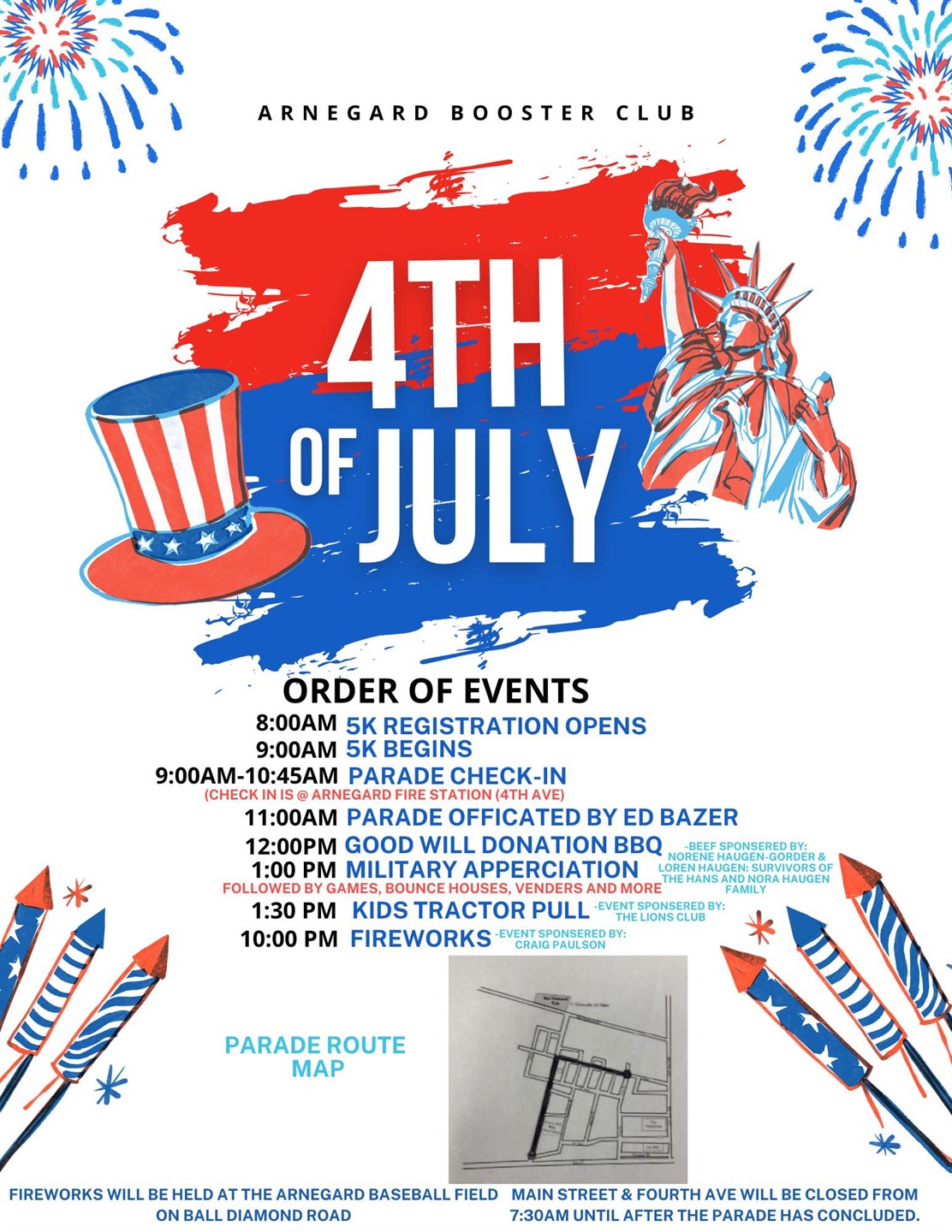 Come join the Arnegard 4th of July celebration in Arnegard at Nelson Park!