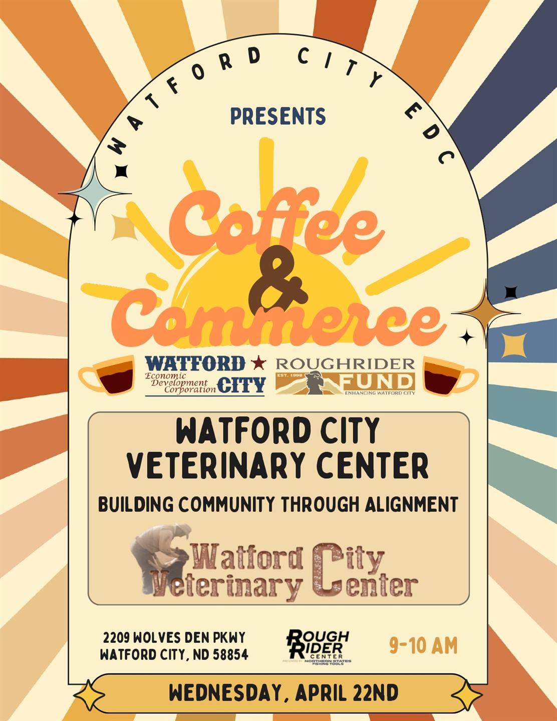 This quarter's Coffee & Commerce will be held on April 22nd at the Rough Rider Center in Watford City from 9 - 10 a.m. The event, hosted by Watford City EDC, offers areas business owners, operators, and dreaming and budding entrepreneurs the opportunity to gather and share ideas. During the hour program, attendees will have the chance to network, listen to a presentation from an area business or resource, and enjoy free caramel rolls and coffee.