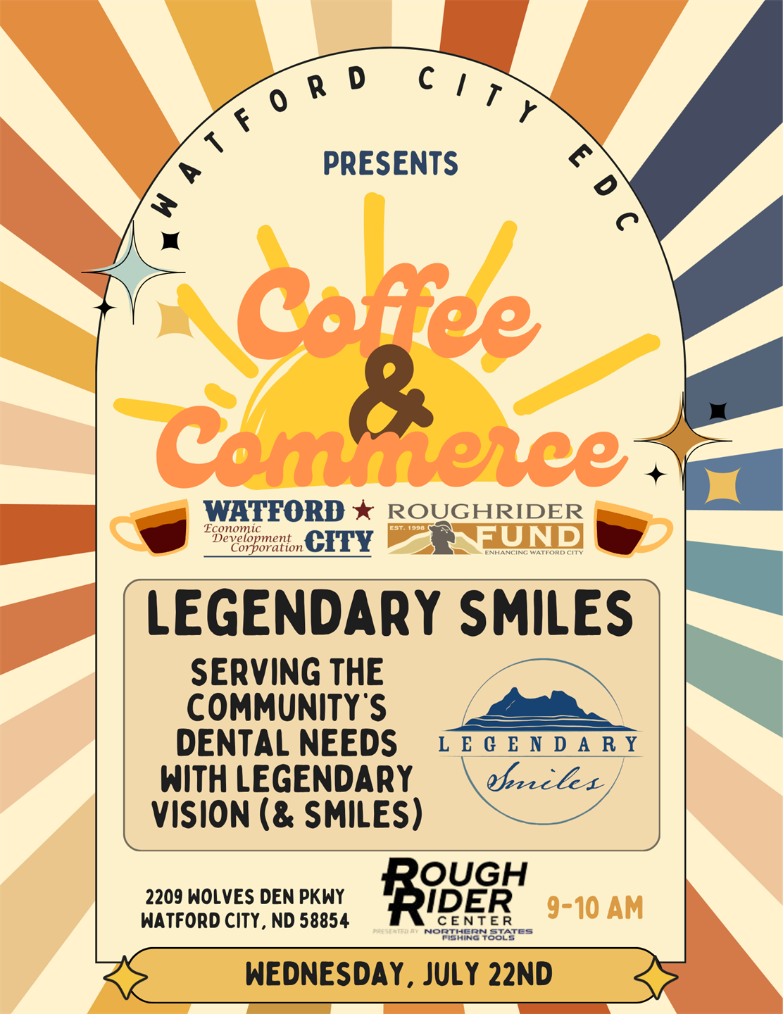 This quarter's Coffee & Commerce will be held on April 22nd at the Rough Rider Center in Watford City from 9 - 10 a.m. The event, hosted by Watford City EDC, offers areas business owners, operators, and dreaming and budding entrepreneurs the opportunity to gather and share ideas. During the hour program, attendees will have the chance to network, listen to a presentation from an area business or resource, and enjoy free caramel rolls and coffee.