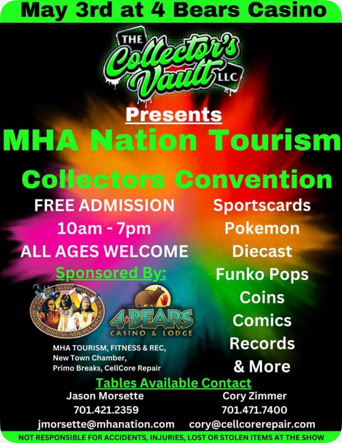 Tables available, contact Jason Morsette at jmorsette@mhanation.com or 701-421-2359 or Cory Zimmer at cory@cellcorerepair.com or 701-471-7400