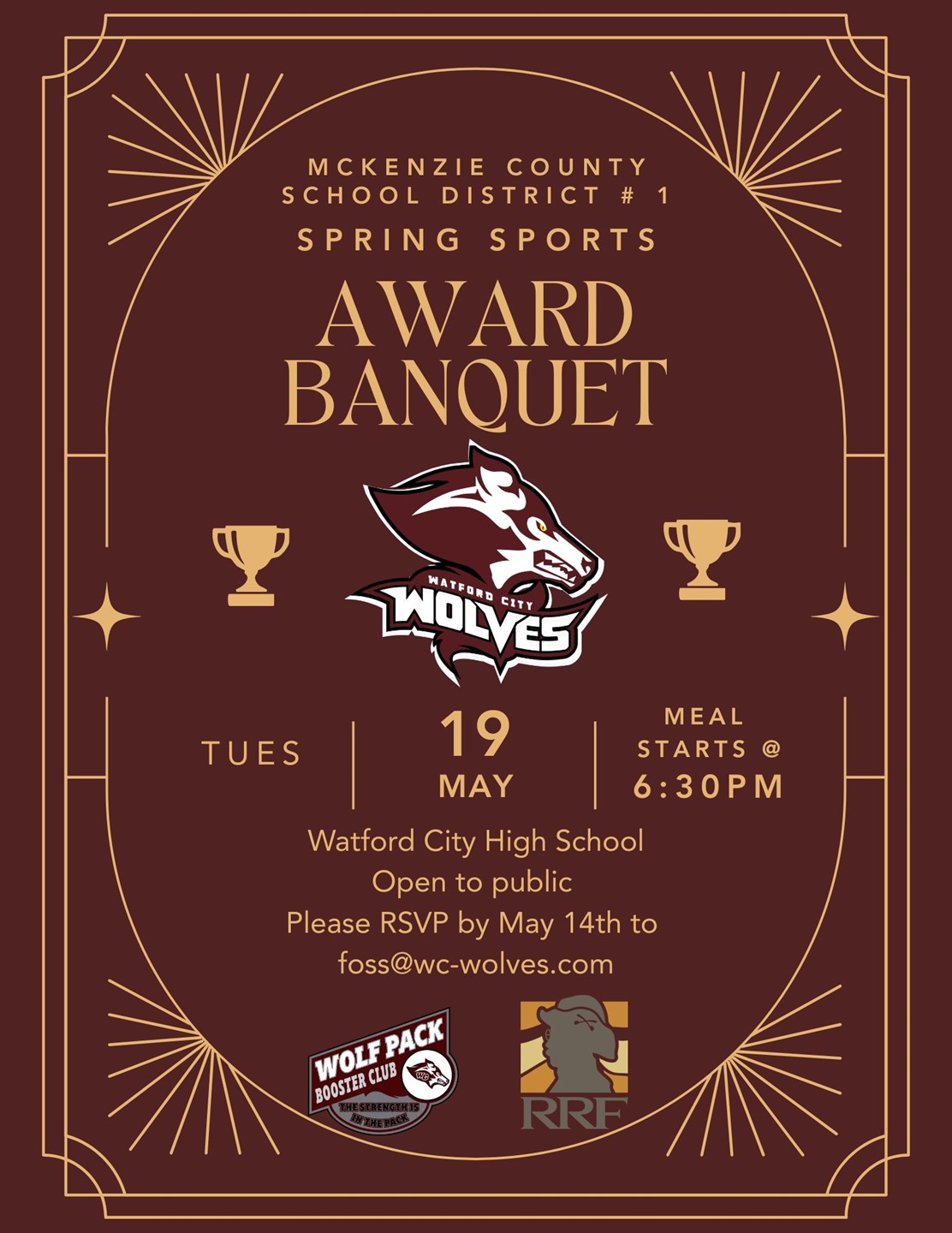 Dinner will be served so please RSVP by May 14th to foss@wc-wolves.com.